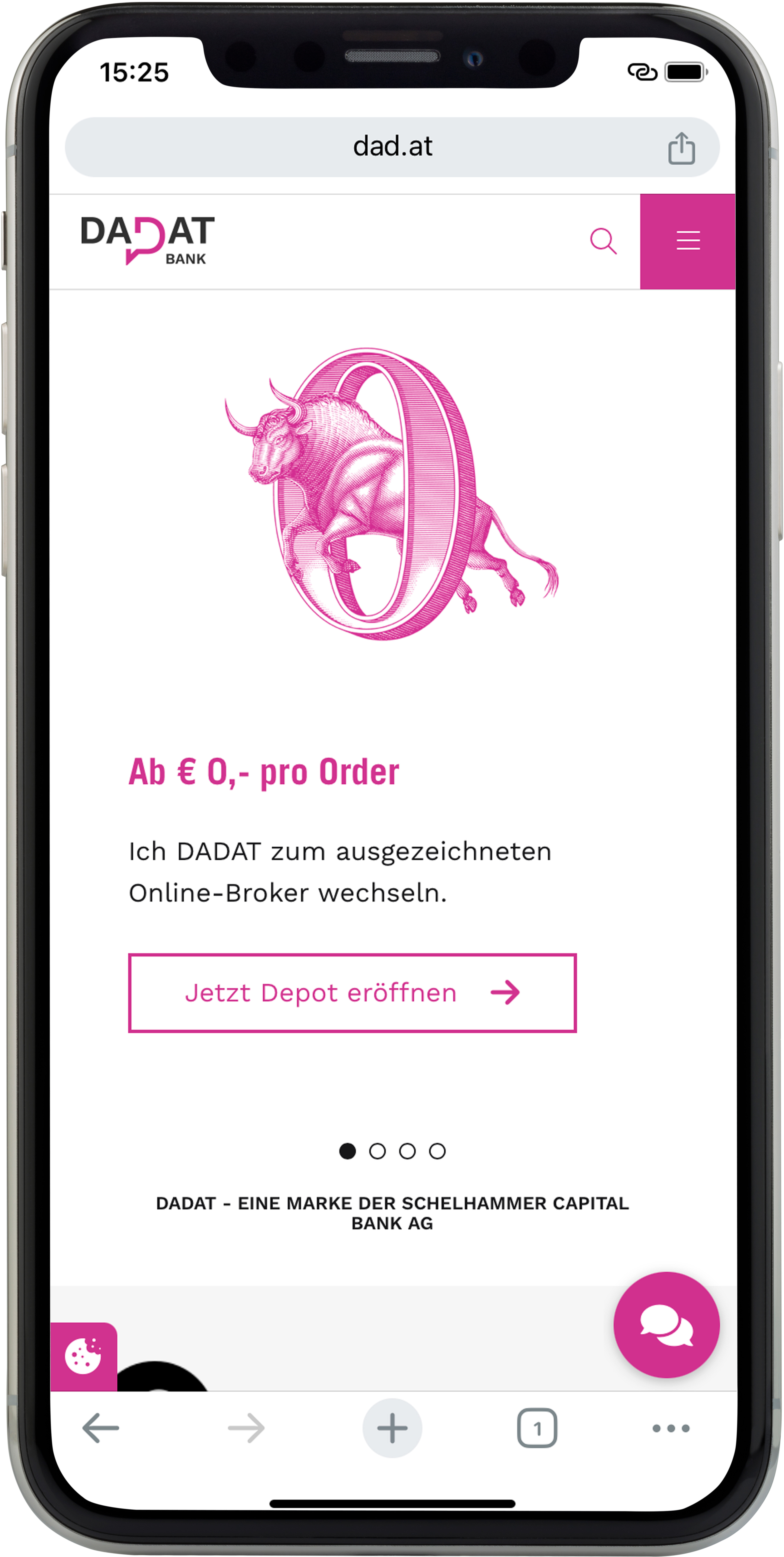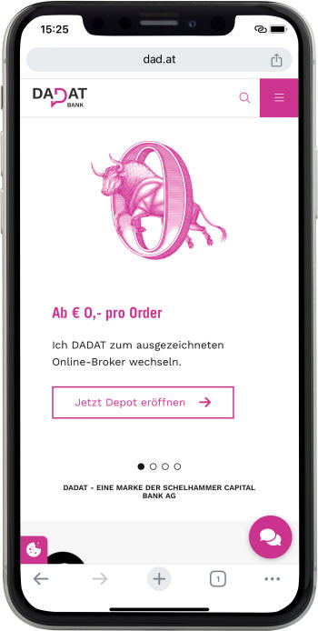 Finanzdienstleistungen. Die DADAT punktet bei ihren Kunden mit einem kostenlosen Pensions- oder Gehaltskonto (monatlicher Monatseingang 1000 Euro), gratis Visa Gold (im ersten Vertragsjahr) - beziehungsweise Debit Mastercard sowie günstigen Tradinggebühren und um 90 Prozent reduzierte Ausgabeaufschläge bei über 5.000 Fonds. Im Rahmen der “Online-Vermögensverwaltung” können sich Anleger über die Webseite der DADAT - www.dad.at - registrieren und anschließend je nach Risikoneigung und Anlagehorizont aus vier verschiedenen Strategien wählen, investiert wird dabei ausschließlich in börsengehandelte Indexfonds (ETFs oder Exchange Traded Funds). Der Einstieg in die Online-Vermögensverwaltung der DADAT ist für Kunden bereits ab 10.000 Euro möglich. Besonderer Anreiz für alle Anleger: Eine All-In-Gebühr von 1 Prozent (zzgl. USt.) deckt hier alle laufenden Kosten, es fallen keine zusätzlichen Spesen an. Die DADAT wurde im „Online-Broker Test 2024“ zum dritten Mal seit Bestehen als bester Online Broker ausgezeichnet. Darüber hinaus ist die DADAT auch "Beste Direktbank" Österreichs. Zuletzt ging sie 2025 zum viertem Mal in Folge als Sieger aus dem aufwändigen Test der Österreichischen Gesellschaft für Verbraucherstudien (ÖGVS) in Kooperation mit dem Wirtschaftsmagazin trend hervor. Hinter der Entwicklung der DADAT steht der erfahrene Finanzmanager Ernst Huber, Mitbegründer und langjähriger Chef der ehemaligen direktanlage.at, heute easybank. “Unsere Vision in der DADAT ist es, die innovativste und flexibelste Direktbank Österreichs zu sein und Step by Step auch unser Finanzbildungs-Angebot für unsere Kunden auszubauen“, sagt Huber. Ernst Huber gilt als Pionier im österreichischen Discount Brokerage und Direktbankengeschäft. Als Mitbegründer und langjähriger Vorstandsvorsitzender war er maßgeblich am Aufbau der im Jahr 1995 gestarteten, höchst erfolgreichen direktanlage.at beteiligt. Zwischen 2012 und 2015 fungierte der Salzburger als Vorstandssprecher (CEO) der DAB Bank AG mit Sitz in München, Muttergesellschaft der direktanlage.at AG und eine der führenden deutschen Direktbanken mit rund 640.000 Kunden und einem Kundenvolumen von knapp 36 Milliarden Euro. Nach der Übernahme der DAB Bank AG durch die BNP Paribas Gruppe war er ab Juli 2015 Vorstandsvorsitzender der Hello bank Austria. Im April 2016 schied er auf eigenen Wunsch aus der BNP Paribas Gruppe aus. Seit September 2016 ist Ernst Huber Mitglied des Vorstandes der Schelhammer Capital Bank AG und in dieser Funktion primär für die DADAT, eine eigenständige Marke innerhalb der GRAWE Bankengruppe, verantwortlich. www.dad.at |