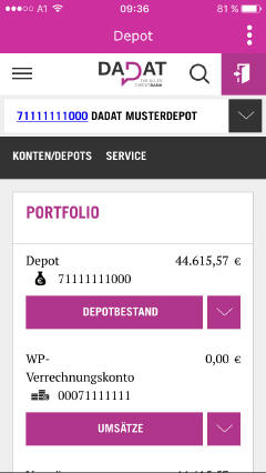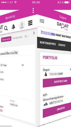 neben sämtlichen Banking-Funktionen auch alle Services der DADAT für den